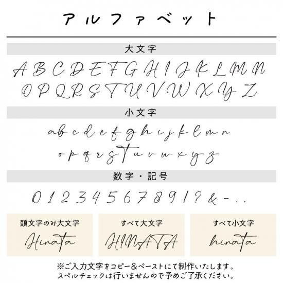 名入れは無料です。アルファベット、日本語、韓国語にてお好みの文字を入れることができます。