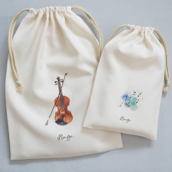 名前入り ポリエステル巾着 〔34〕 楽器 | 名入れ 無料 | 当店オリジナル巾着使用 | 吹奏楽 オーケストラ 部活 入園 入学 出産祝い ギフト プレゼント