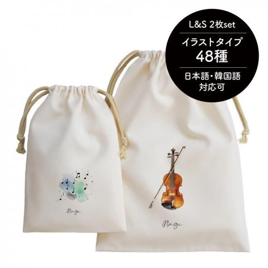 名前入り ポリエステル巾着 ラージ&スモール2枚セット 〔34〕 楽器 | 名入れ 無料 | 当店オリジナル巾着使用 | 吹奏楽 オーケストラ 部活 入園 入学 出産祝い ギフト プレゼント